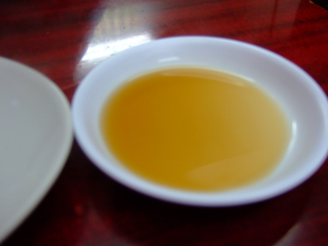つけタレの酢醤油、これにラー油を少したらすと、パンチのある味になります。