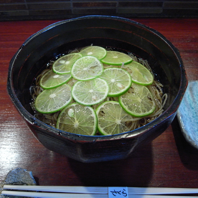 今回は夏らしく、酢橘の冷かけで!