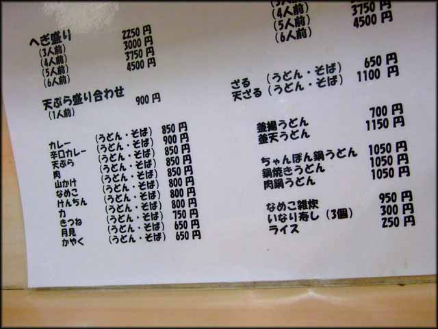 メニューはこんな感じ、讃岐うどんにへぎそば、面白い組み合わせですね (^_^.)
