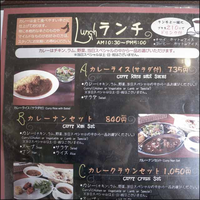ランチのメニューはこんな感じ、午後5時までやってるのが有り難い。