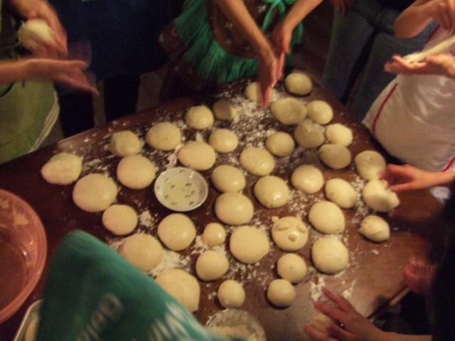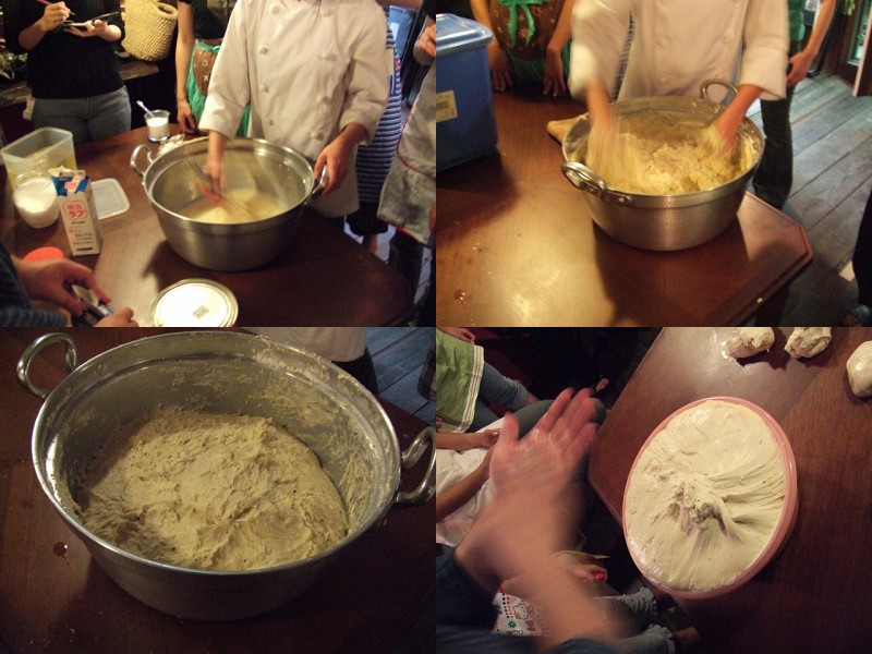 混ぜたり、捏ねたりしてるのは、プロのパン職人の方です、さすが扱いが上手い。