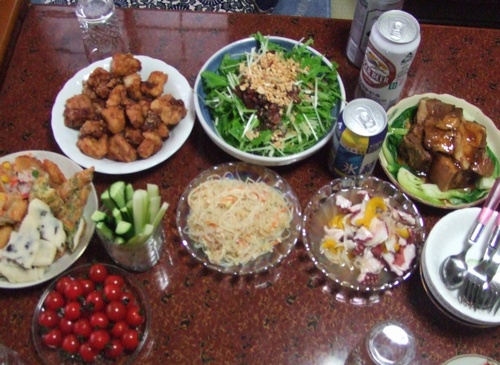豚みそや水菜サラダ、タコのまりね