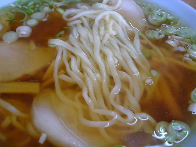 あっさり、澄んだ透明なスープに津軽らしい細かいウエーブの自家製の縮れ麺。