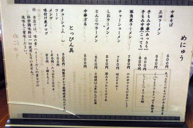 無添加、自家製麺のPOPが、ラーメンへの愛情を感じます。